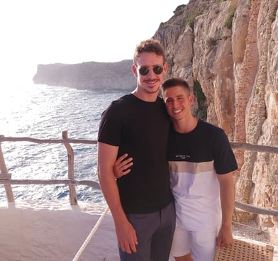 Nos conocimos en Granada, en 2017. El fútbol llevó a Alberto a vivir en la ciudad donde conoció a Rubén, que por aquel entonces terminaba de estudiar la carrera de Enfermería. Han pasado más de 7 años desde que, el 18 de junio de 2018, empezáramos a salir. Por el camino, Granada, Murcia, Madrid, Marbella, y muchos otros lugares que nos han visto crecer. Así llegamos al 27 de junio de 2025, el día en el que hemos elegido para darnos el "Sí, quiero".